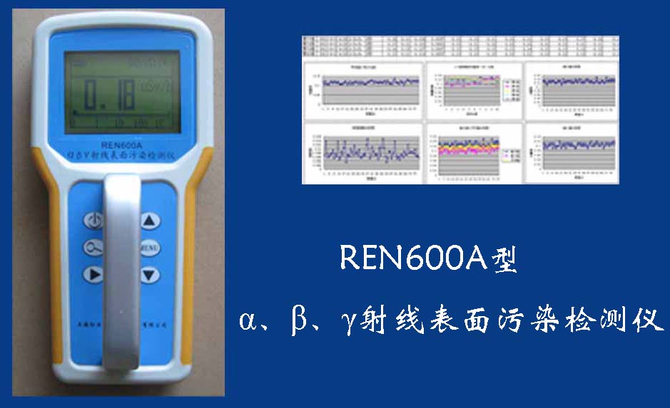 • REN600A α、β、γ多功能污染儀REN600A型α、β、γ射線表面污染檢測儀即可檢測α、β、γ射線,也能檢測到X射線,它采用高速嵌入式微處器作為數據處理單元,點陣式大屏幕LCD液晶顯示,讀數清晰、操作方便,具有400條超大容量數據存儲。儀器采用進口的大面積MICA蓋革探測器,具有較高探測效率,可進行α、β輻射表面污染檢測和X、γ輻射劑量率的監測。此外通過配套的RenriCont表面污染管理軟件可將存儲的數據讀出后分析?蓮V泛用在制藥廠、實驗室、發電廠、進出口商檢、采石場、環境實驗室、環境污染調查、核安全應急、緊急狀況營救站、金屬處理廠、地下油田、供油管道裝備、醫院核醫學科、同位素實驗室